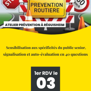 Atelier de prévention Sécurité routière pour les seniors La commune de Réguisheim et Amaelles organise un atelier de ... 10 Mar 14h00 - 17h00 Mairie de Réguisheim